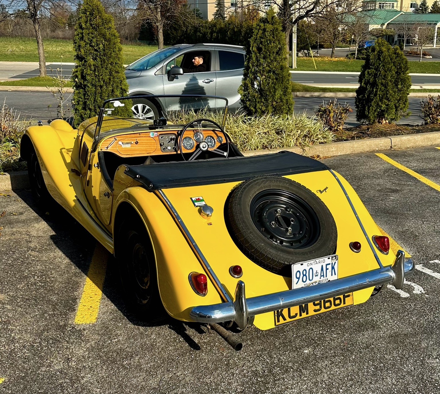 Tim Clarke, one brave soul driving his Morgan top down to Cars and Coffee in December 2025